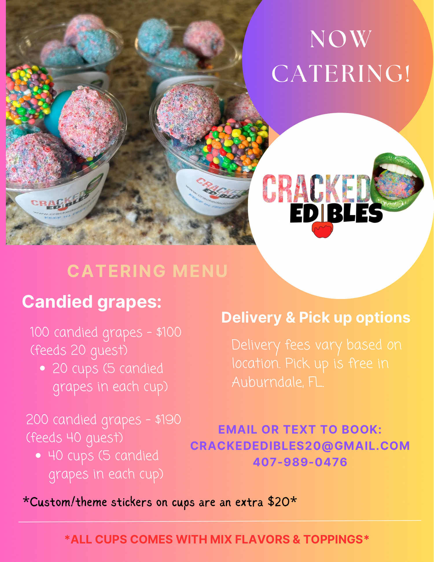 Order online and pick up in Auburndale, FL. Please allow 1 - 2 hours for pick up. Wait for confirmation email/text before picking up. MUST BE PICKED UP THE SAME DAY! Thank you!